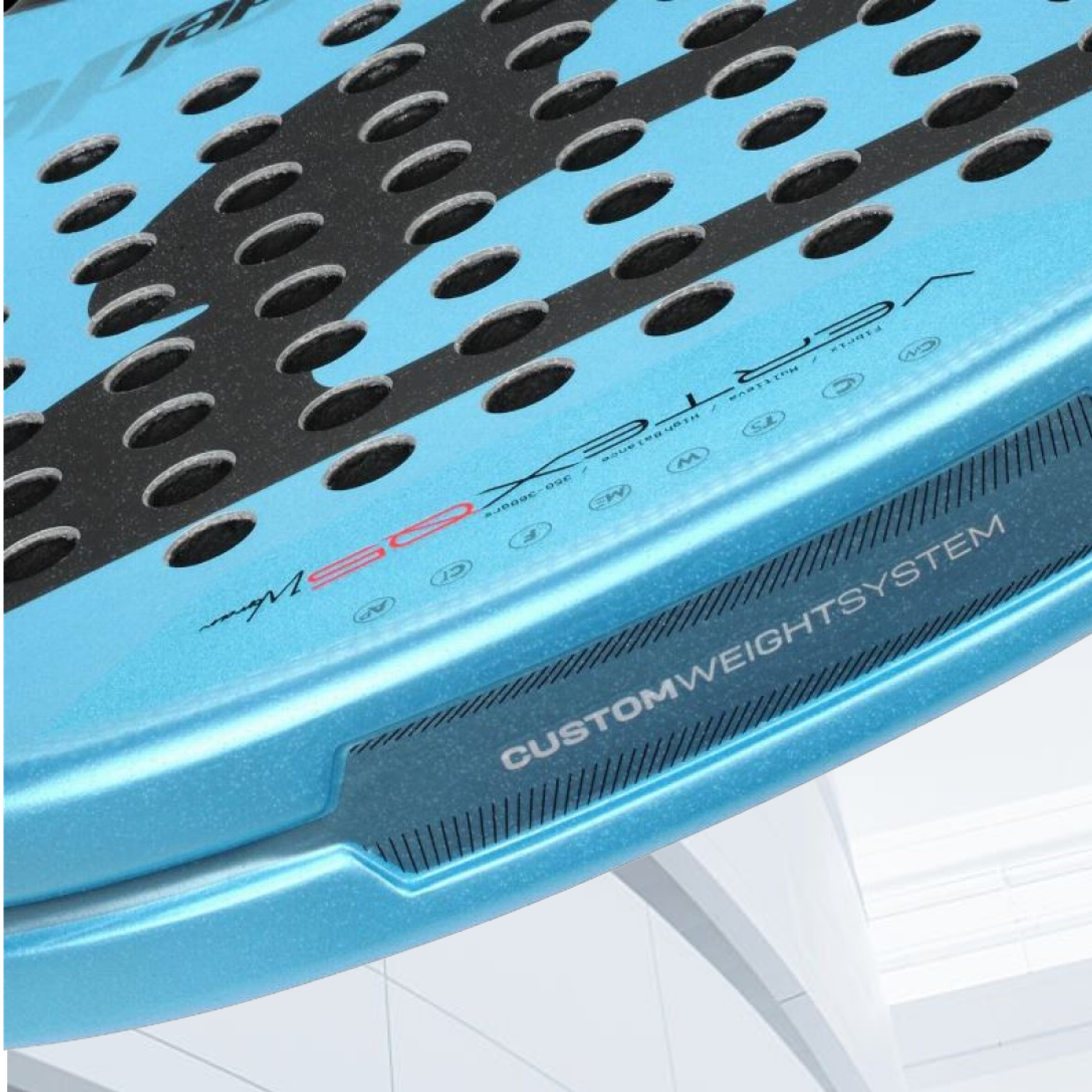 Tejido mixto de fibra de carbono y fibra de vidrio que brinda una salida de bola más elástica y un tacto más cómodo.